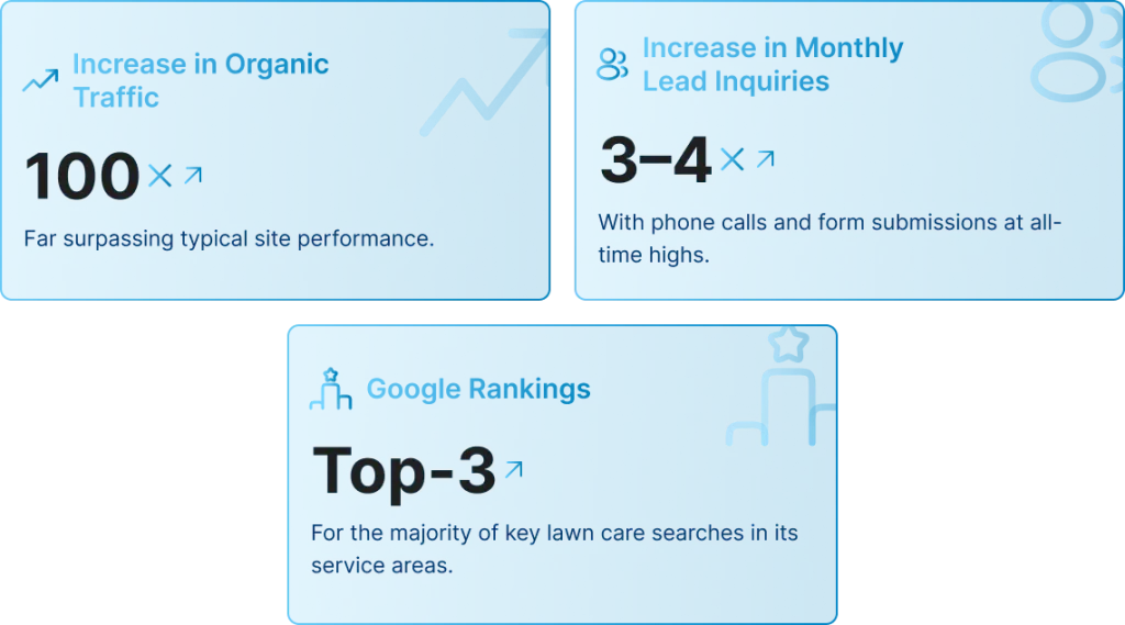 Our SEO efforts pushed Harry’s site onto page one for dozens of key lawn care terms, dramatically expanding reach.